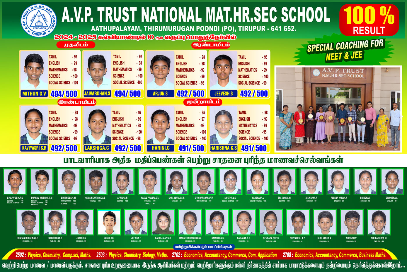 Explore our collection of photographs capturing school events, cultural programs, sports activities, academic achievements, and special moments. Browse through memories that showcase the vibrant life at A.V.P. Trust National Matric. Hr. Sec. School.