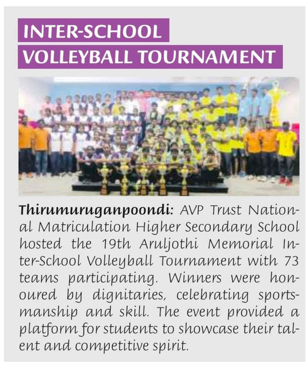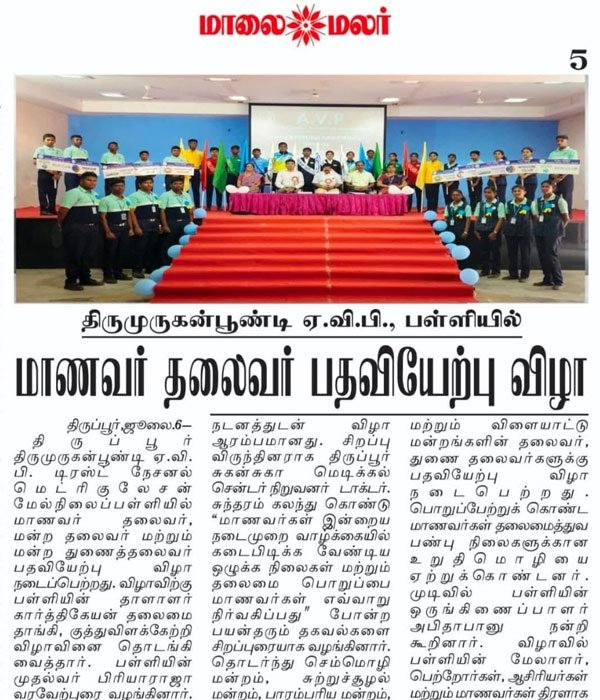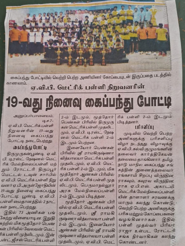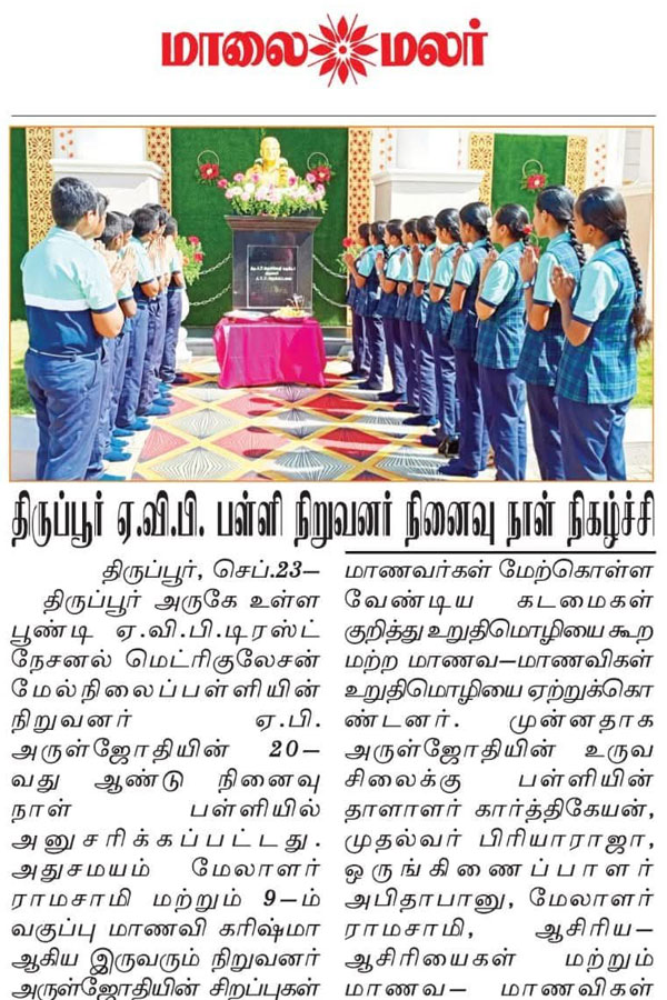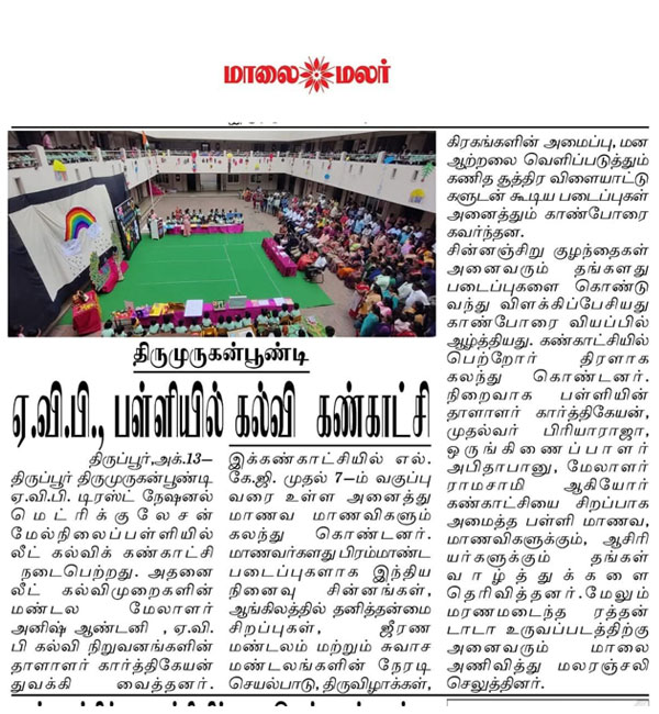 Stay updated with the latest news, events, and achievements from A.V.P. Trust National Matric. Hr. Sec. School. Our press releases cover important milestones, academic achievements, cultural events, sports victories, and community initiatives that showcase the excellence and growth of our institution.